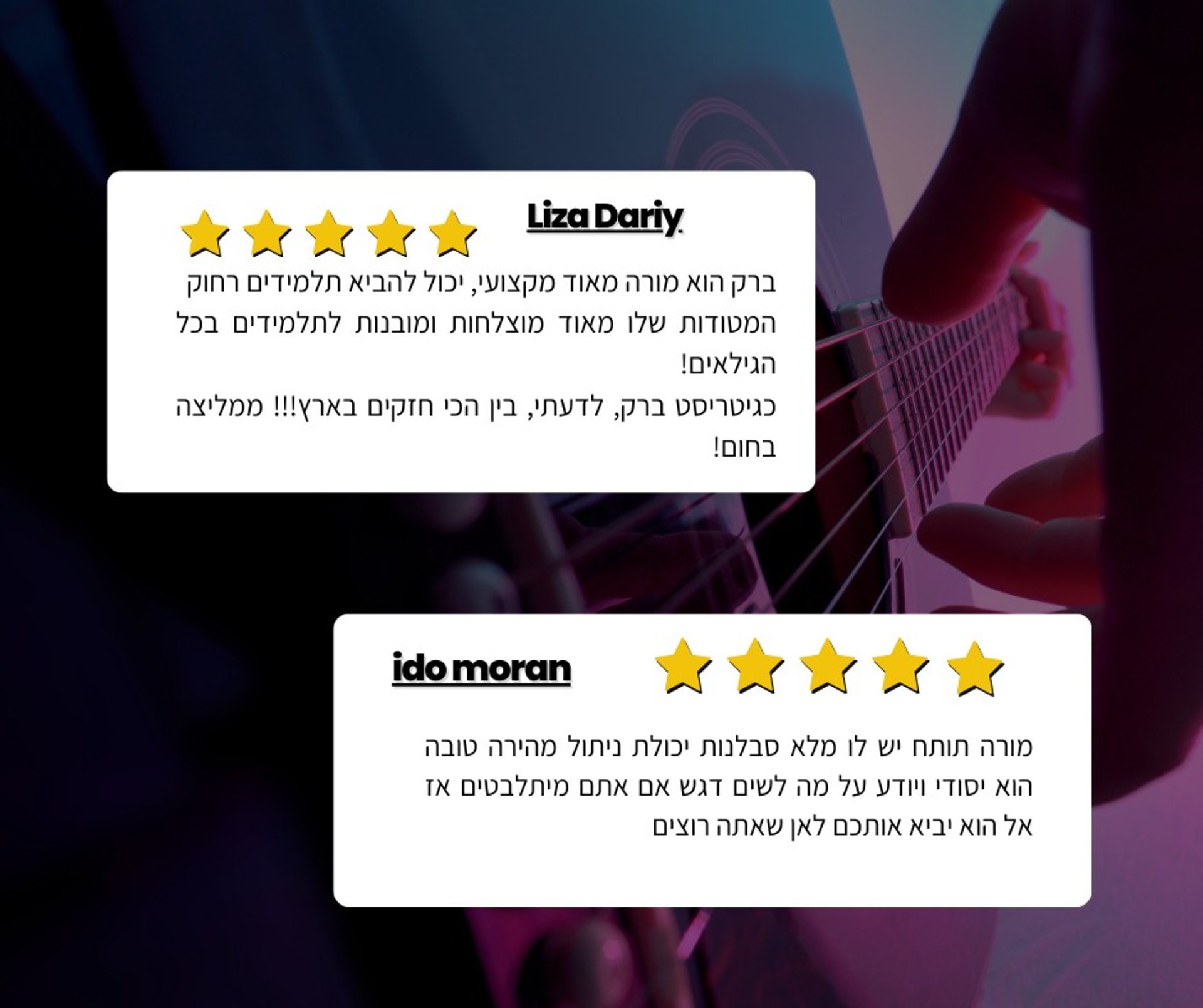 לפרטים נוספים על שיעורי גיטרה ומוזיקה, פנו אלינו.